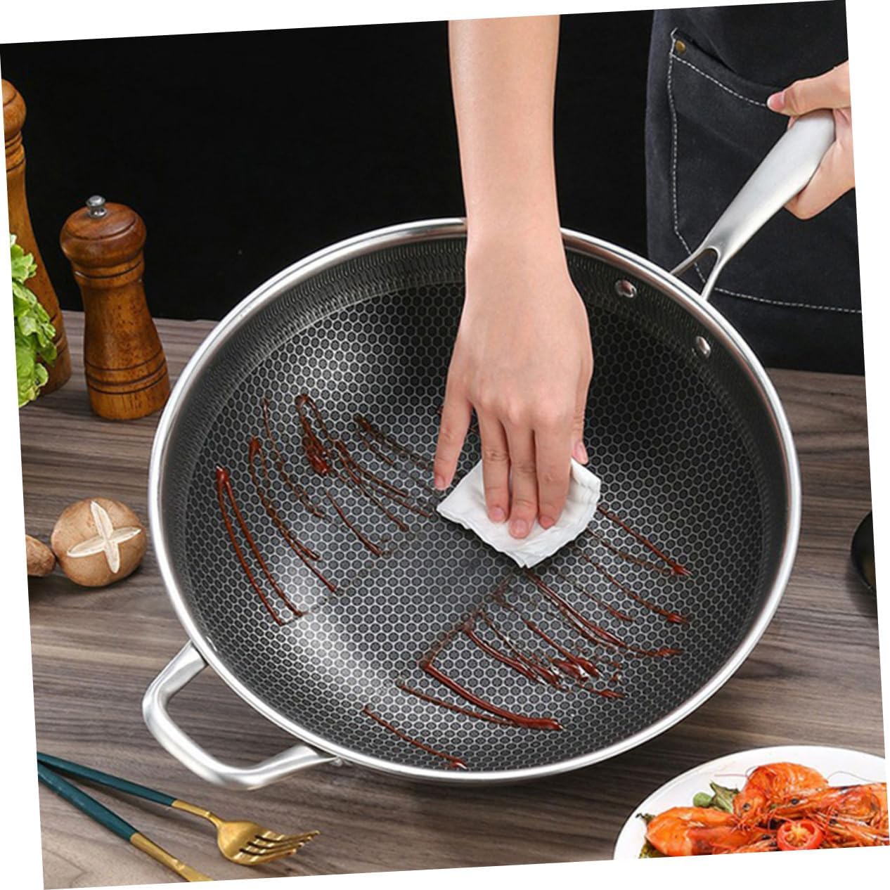 Package Include 1 x stainless steel wok Characteristics - Size: 59.50X34.00X10.00cm/23.38X13.36X3.93in double handle wok - Material:Stainless Steel honeycomb cookware -Product Info:Stainless steel frying pan - Easy and effortless when holding the pan, even ladies can hold the pan and start frying stainless steel pan. - ColorSilver non stick honeycomb frying wok - Honeycomb Grain Wok with double handles design, which brings great convenience to you frying wok. - Made of stainless steel which features with stability and durability, very hard and smooth for usage stainless steel frying pan. - Simple and delicate, excellent and carefully crafted, not easy to deform or break due to the high hardness cooking wok. - With handle design, saving your time and effort in carrying and storage. You can fry vegetables, fry eggs, cook hot pot, do cooking wok for deep Goods Descriptionchinese frying pan Designed for home cooking, this wok can be used to fry, cook and steam.chinese cooking utensils Made of metal material for longtime and use.wok frying pan It has a simple design, but very practical in use, giving you a